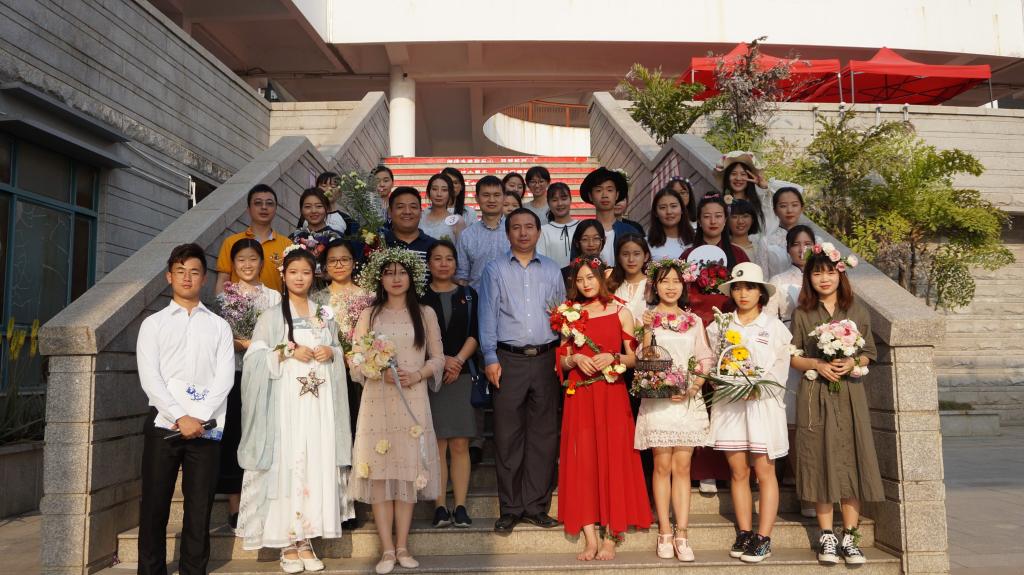 院长致辞完毕后, “花样年华”插花比赛正式开始。本次插花比赛以“人体花艺”为主题,以人为载体、完成精美的花艺作品。11支参赛队伍构思精巧,在模特身上用各种鲜花进行搭配装饰。模特们在赛场上自信展现着成品,传达出不一样的生活情趣,颇获掌声。